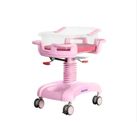 Patient visibility is maximized by the clear, high-impact acrylic crib. This allows $360$-degree observation of the baby from any point in the room. This is crucial for continuous monitoring. The hydraulic ABS baby cot for hospital also focuses on staff comfort. The adjustable height allows nurses to work at an ideal ergonomic level. This reduces bending and back strain during daily care tasks. Furthermore, the cot includes four smooth-rolling caster wheels with reliable locking mechanisms. This ensures safe movement and stable positioning once the cot is in place.